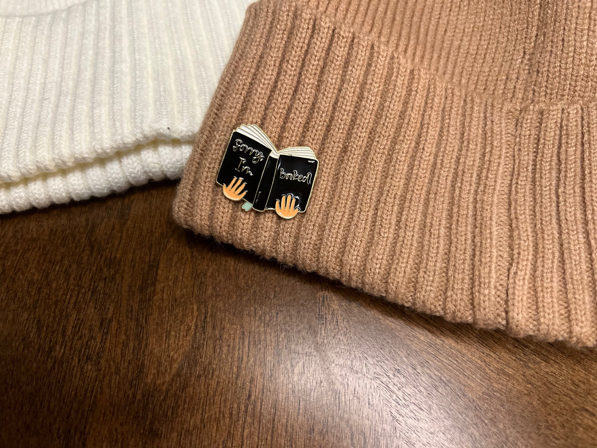 Get ready to book your schedule and show off your love for reading with I'm Booked! This pin features an open book design that says "Sorry, I'm booked", adding a playful touch to any outfit. Perfect for book lovers and busy bees, this pin is a fun way to express your love for literature.