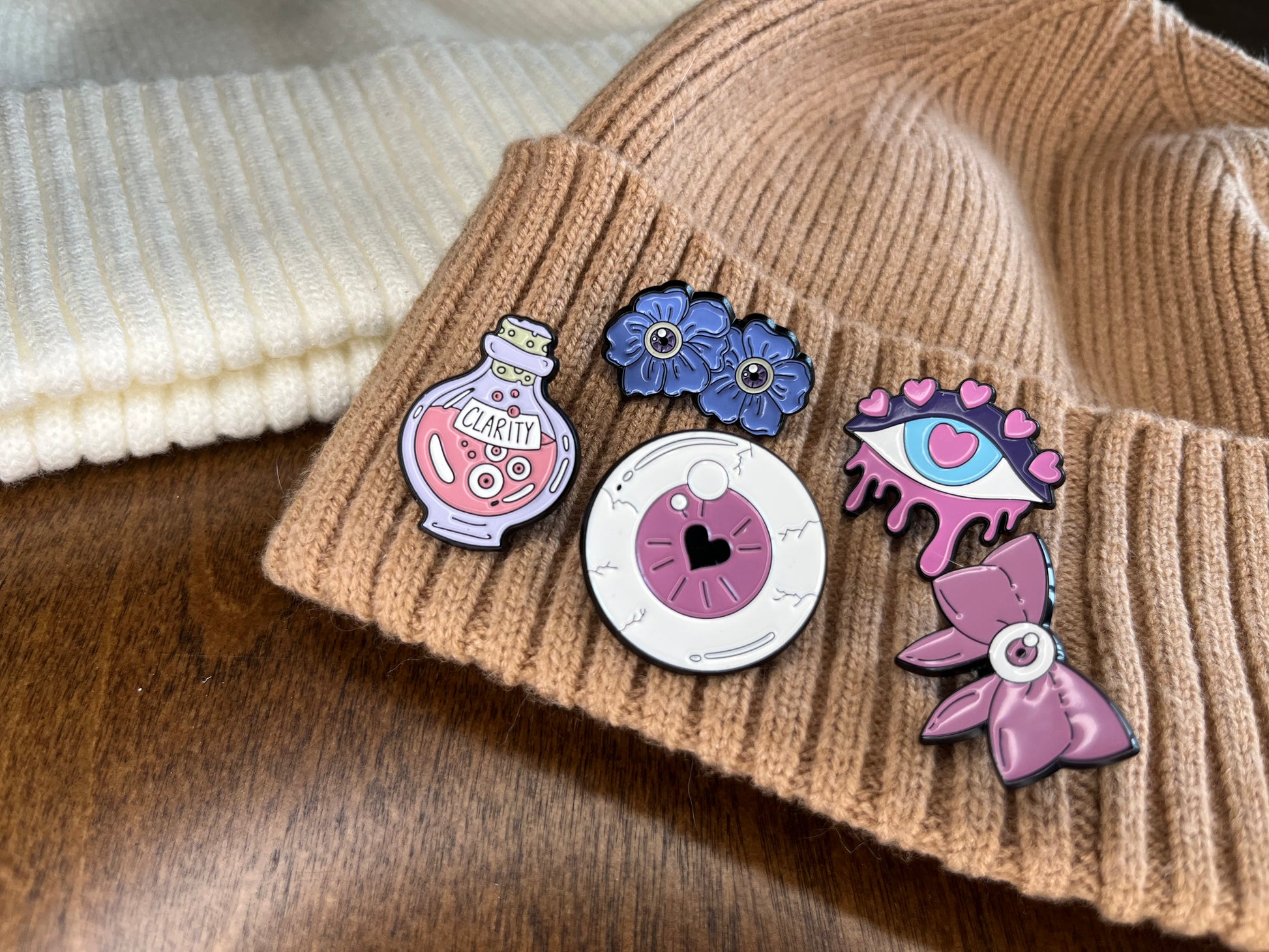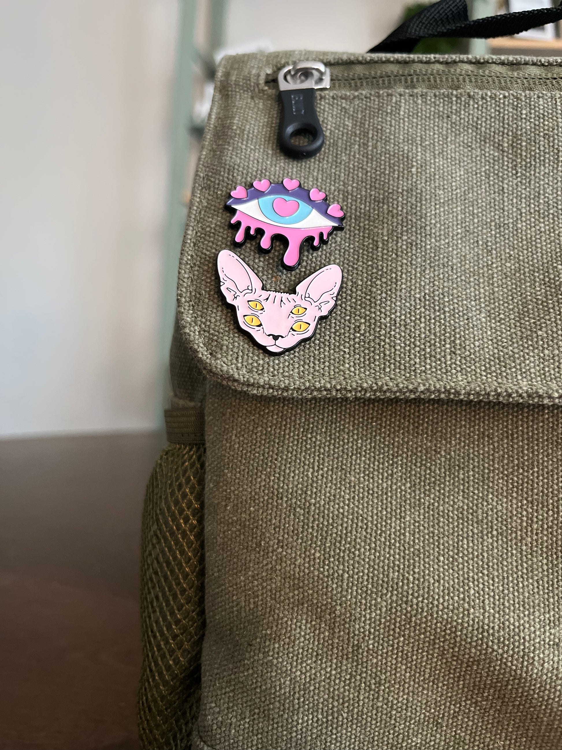 Show off your inner punk with our Punk Potion Pack featuring a hairless pink cat pin with double the eyes. Express yourself with this quirky accessory that will catch everyone's attention!