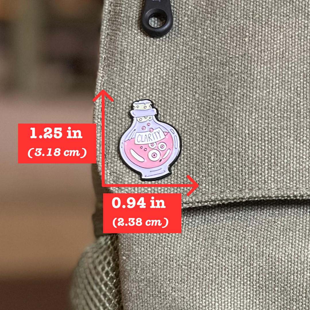 Unlock your creative flow with the Punk Potion Pack's Clarity Potion pin (Included in our Punk Potion Pack)! This colorful potion jar is not only a fun accessory, but it also serves as a reminder to stay focused and inspired. Add a dash of clarity to your day (and your outfit) with this quirky pin.