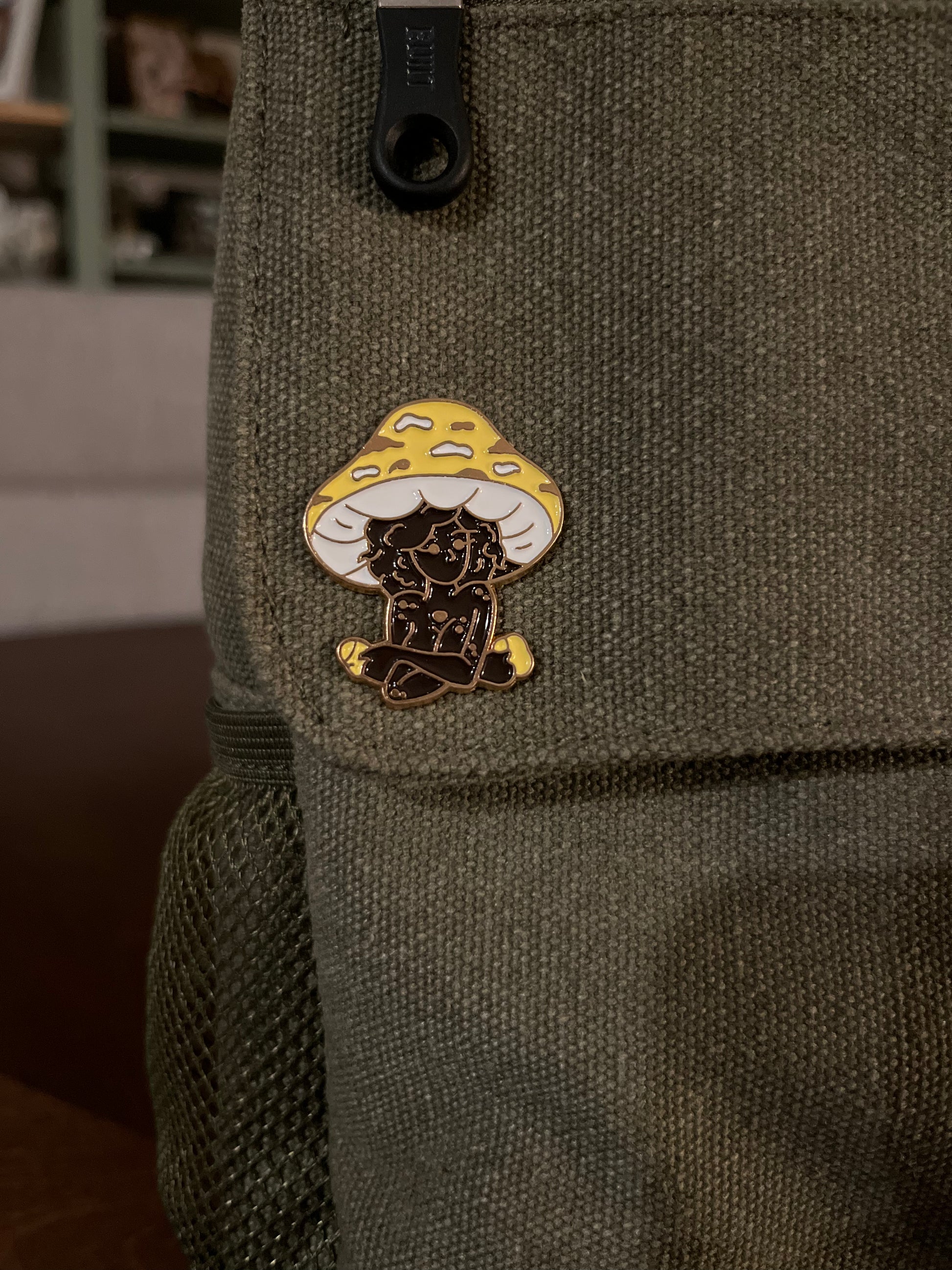Indulge in your silly side with Yellow Mushroom Top Girl - a sassy and flirty character with a funky yellow mushroom hat. She'll add a dose of fun and originality to any ensemble, making her the perfect addition to your pin collection!